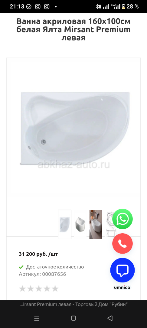 Ванна акриловая