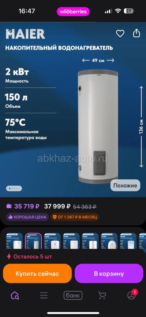 Дополнительная информация: Бойлер 150 литров , новый в упаковке не понадобился, цена 35.000₽ город Сухум