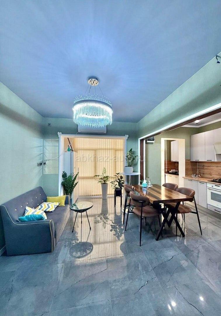 Дополнительная информация: 📢1987€. 5 - К. КВАРТИРА 🔹️г. Сухум, Новый район 🔹️Площадь 120 кв 🔹️3/9 этаж 🔹️4 спальни, гостиная-кухня, балкон, 2 раздельных санузла 🔹️Установлен лифт, домофонная система 🔹️Дизайнерский ремонт, выполненный с из высококачественных материалов 🔹️В кухне-гостиной и одном из санузлов установлена система теплых полов с покрытием из керамогранита, в остальных комнатах уложен паркет 🔹️Квартира оснащена современной сплит-системой, обеспечивающей комфортную температуру в любое время года, наличие накопительного бака объемом 100 л, а также дополнительного бака на кухне, гарантирует бесперебойное водоснабжение 🔹️Мебель и техника остается покупателю 🔹️В квартире произведена полная замена электропроводки и сантехники 🔹️Ремонт выполнен с нуля в 2025 году 🔹️Инфраструктура: школа (600 м), детский сад (200 м), магазин (50 м), кафе (100 м), салон красоты (150 м) 🔹️Документы: договор купли-продажи, домовая книга 🔹️Объект в собственности более 45 лет 🏷8 500 000₽