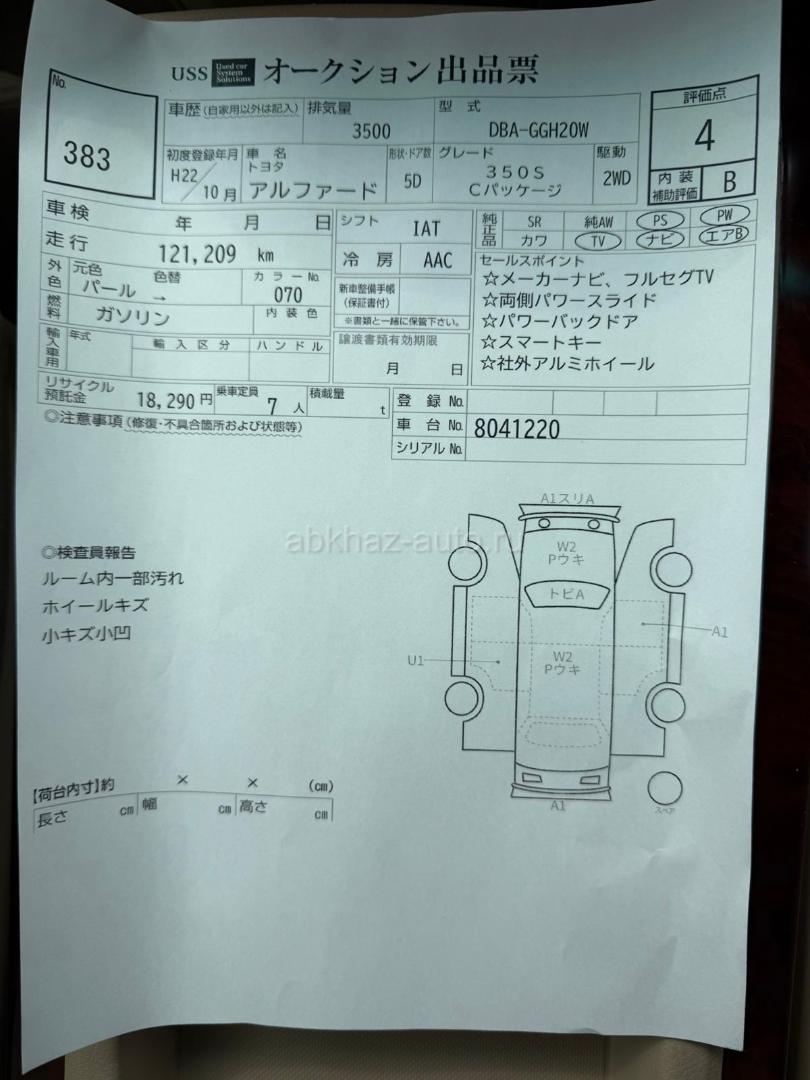 Двигатель: бензиновый, 3.5 л Трансмиссия: автоматическая Кузов: минивэн Цвет: белый Пробег: 122 км Год выпуска: 2010 Регион: Сухум Дополнительная информация: Только из Японии Под заказ!!! Срок доставки 3-5 дней Оценка 4 B WhatsApp: +7(940)923-23-20