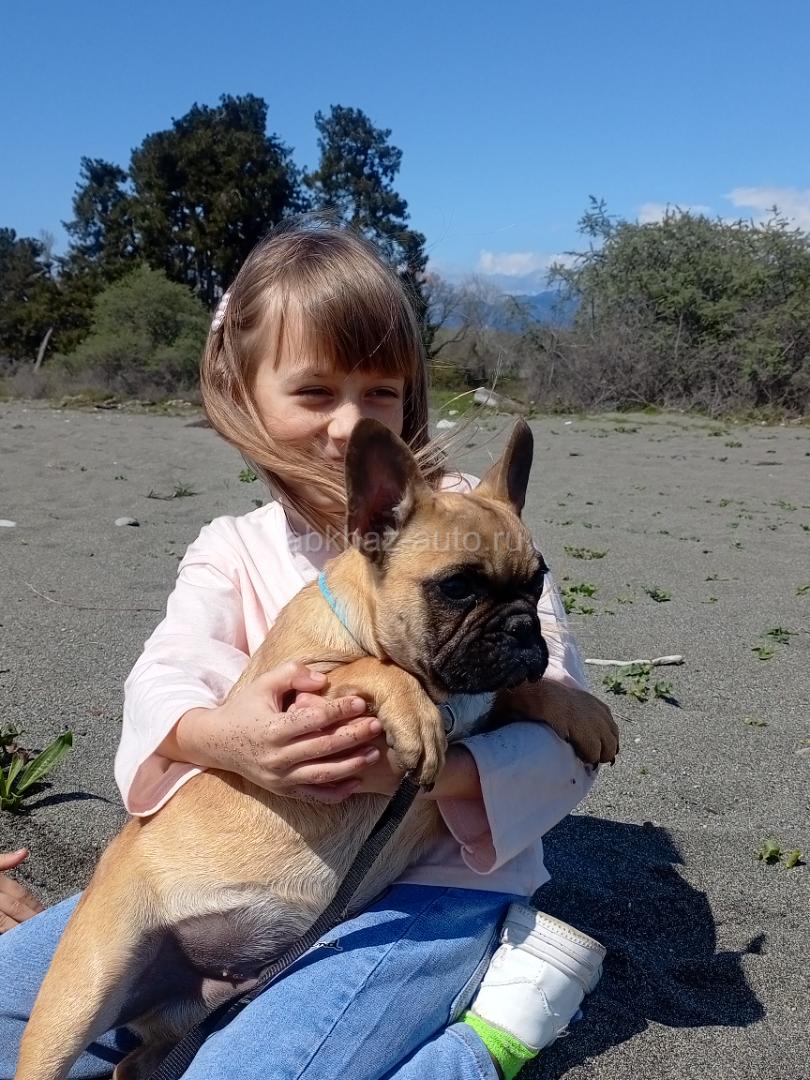 Дополнительная информация: Продаётся мальчик породы Французский бульдог, три месяца, полностью привит, обработан от паразитов в том числе от блох и клещей. Растет в постоянном контакте с детьми, очень их любит . Мальчик активный, игривый, без проблем с дыханием. С документами, клеймом, забирать в Пицунде