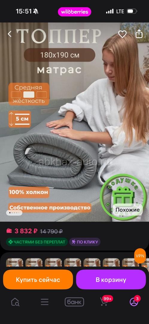 Дополнительная информация: Продаю матрас новый, заказала но не пригодился, в упаковочном пакете лежит даже не открывали
