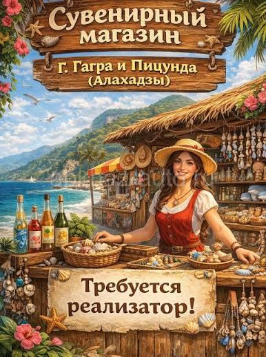 Дополнительная информация: В сувенирный магазин в г.Гагра и в Пицунда (Алахадзы), требуется реализатор,по всем вопросам обращаться +79409999013