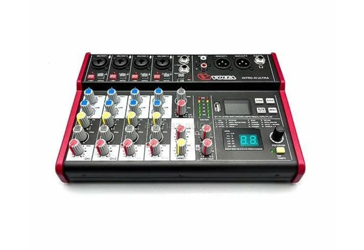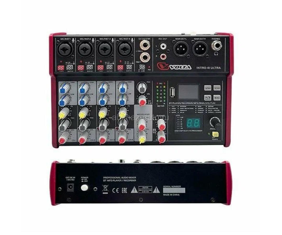 Дополнительная информация: Абсолютно новый компактный микшерный пульт с многоформатным аудиоплеером и цифровым процессором эффектов Volta INTRO 41 ULTRA+. За счет своих небольших габаритов подходит и для уютных небольших кафе, ресторанов, так и для выезда на свадьбы, корпоративы. Микшер аналоговый, 6 каналов, цифровой процессор эффектов. Вес 1,17 кг, высота 66 мм, ширина 22 мм, глубина 165 мм.