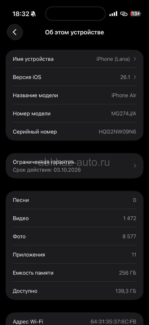 Дополнительная информация: Айфон Эйр 256гб всё работает исправно АКБ 99% на экране есть царапина небольшая (на фото видно) Остальное по телефону