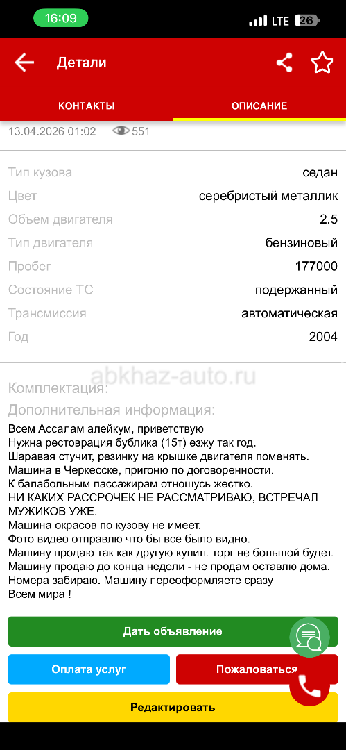 Дата подачи объявления: 17.04.2026 23.48