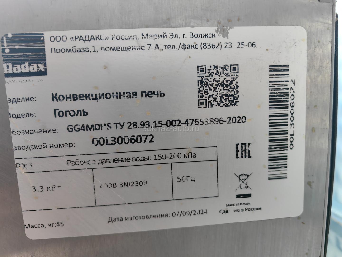 Дополнительная информация: Печь конвекционная Radax, на 4 уровня, 4 противеня в придачу. Режимы работы 3 фазы 320v, и 1 фаза 220v.