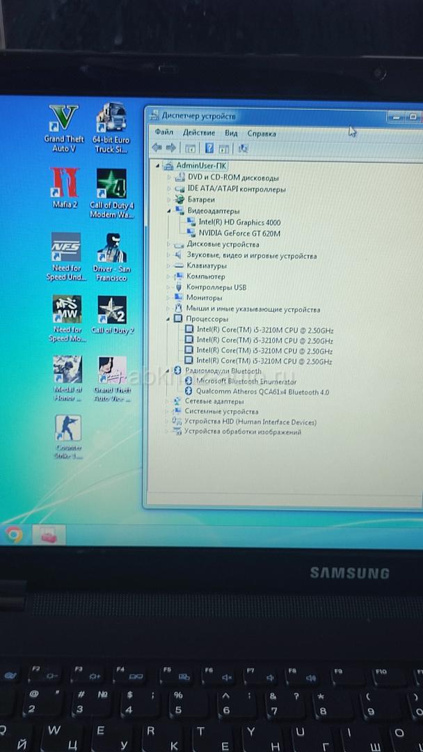 Дополнительная информация: Мощный ноутбук Samsung, в хорошем состоянии, зарядку держит от 50мин часов до 2х часов, в зависимости от нагрузки, Установлено Много Игр, Win7, Мощный Процессор Intel Core5 2,50ггц, Оперативная память 6гб, Жёсткий диск 500гб, Две видеокарты Nvidia Geforce GT 620M 1гб, Intel HD Graphics 4000 2гб, Клавиатура•Звук•Вай-Фай•Блютуз, все Работает, в комплекте Зарядное устройство, беспроводная Мышка, Коврик, Сумка, Торг уместен