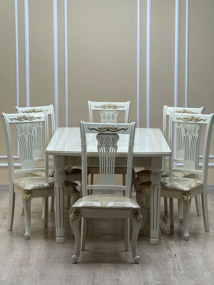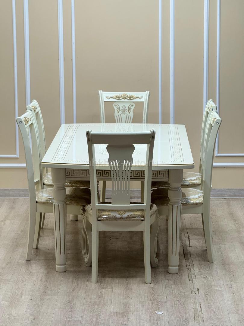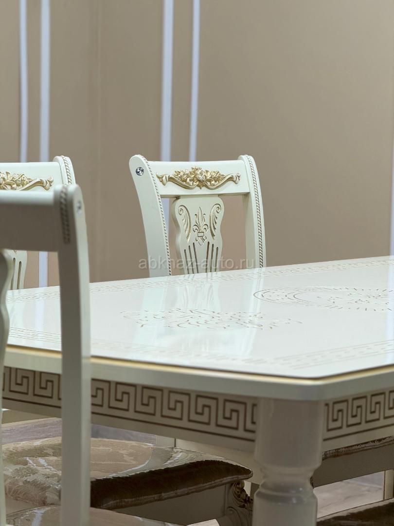 Дополнительная информация: Стол Таченка🔅 Размер 120/160/80 - 19.000₽ Размер 160/200/90 - 20.000₽ Размер 200/240/100 - 21.000₽ Цвета: Беж/золото, белый/серебро, орех/золото ⎯⎯⎯⎯⎯⎯⎯⎯⎯⎯⎯⎯ Стулья Гитара 🎸 Цена: 4.000₽