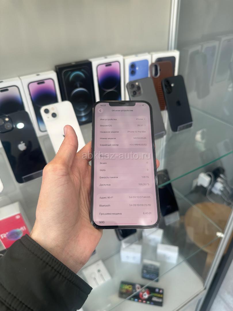 Дополнительная информация: В наличии Айфон 12 про Макс Память 128gb Акум:84% Телефон в оригинале! ❗️В наличии много телефонов❗️ Телефон в отличном состоянии, любые проверки на месте ! • Все устройства проверены перед продажей • Предоставляем услугу Trade-In: вы с выгодой можете заменить старый смартфон на новый • Создаем аккаунт Apple ID прямо на месте • Устанавливаем защитное стекло сразу после покупки • Устанавливаем банковские приложения (Т-Банк, Сбербанк) • При покупке смартфона гарантирован подарок 🎁 ⎯⎯⎯⎯⎯⎯⎯⎯⎯⎯ 🚗 Доставка любого телефона менее чем за сутки 📌 Доставляем б/у и новые модели 📌 Доставляем по всем городам Абхазии ⎯⎯⎯⎯⎯⎯⎯⎯⎯⎯ 🔴 Магазин расположен в городе Гагра, ул, Сосналиева 1 Контактный номер: +7 (940) 999-30-10 Наша соц. сеть Instagram: @t_mobile_____ Мы работаем 24/7 без выходных По всем интересующим вопросам звонить по телефону 📞