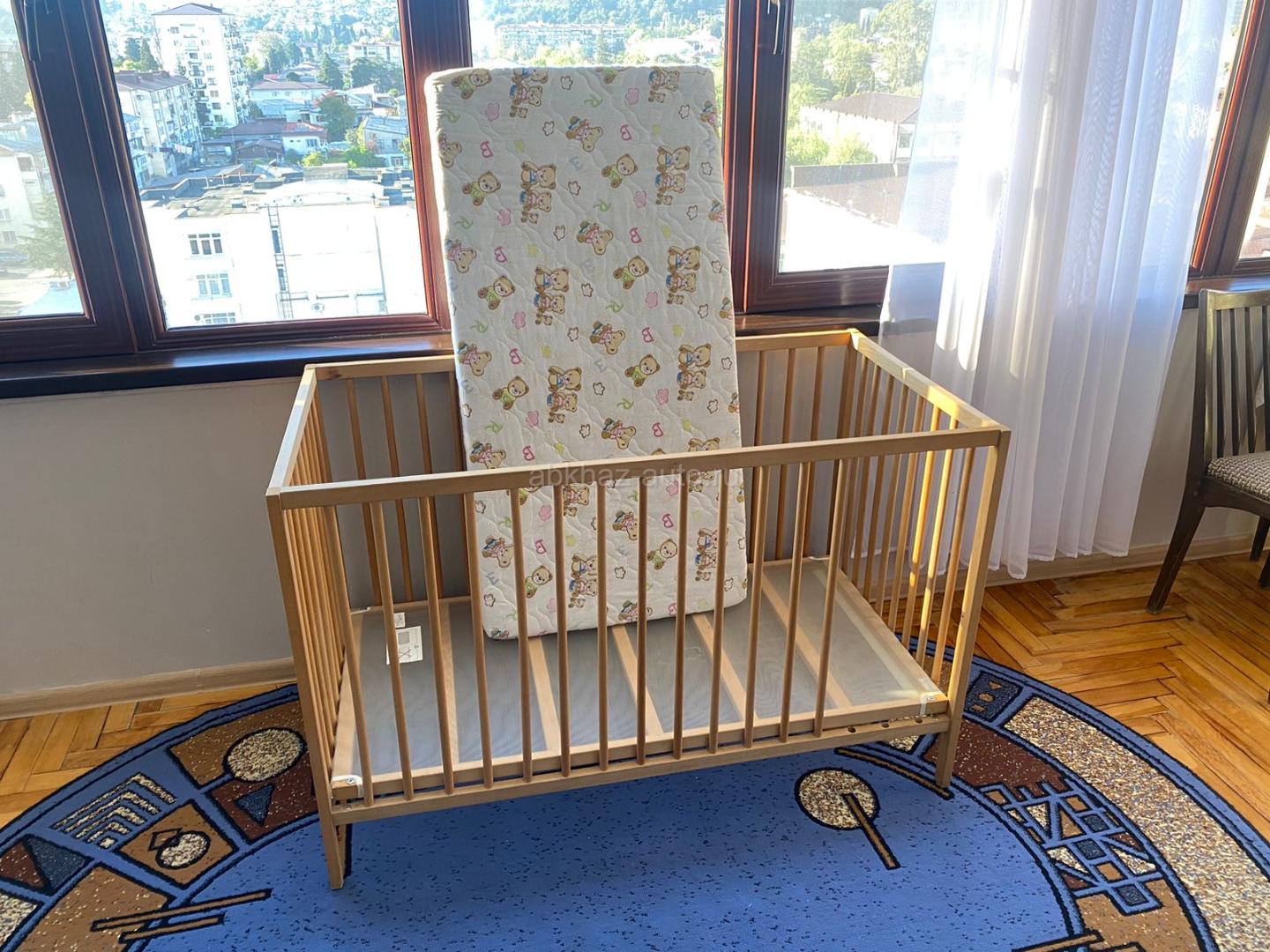 Дополнительная информация: Детская кроватка + двусторонний матрас. Без трех прутиков в ножках, чтоб сам вылазил из кроватки. Самовывоз Сухум.