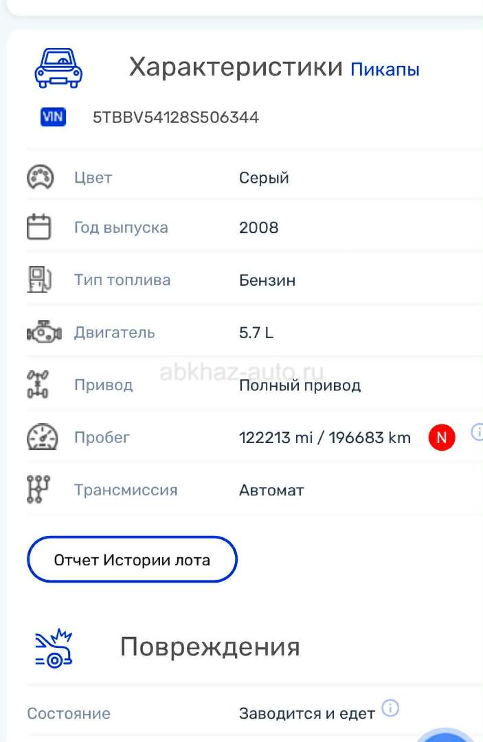 Двигатель: бензиновый, 5.7 л Трансмиссия: автоматическая Кузов: пикап Цвет: синий Пробег: 190000 км Год выпуска: 2008 Регион: Вся Абхазия Дополнительная информация: Whatsapp +995596919797