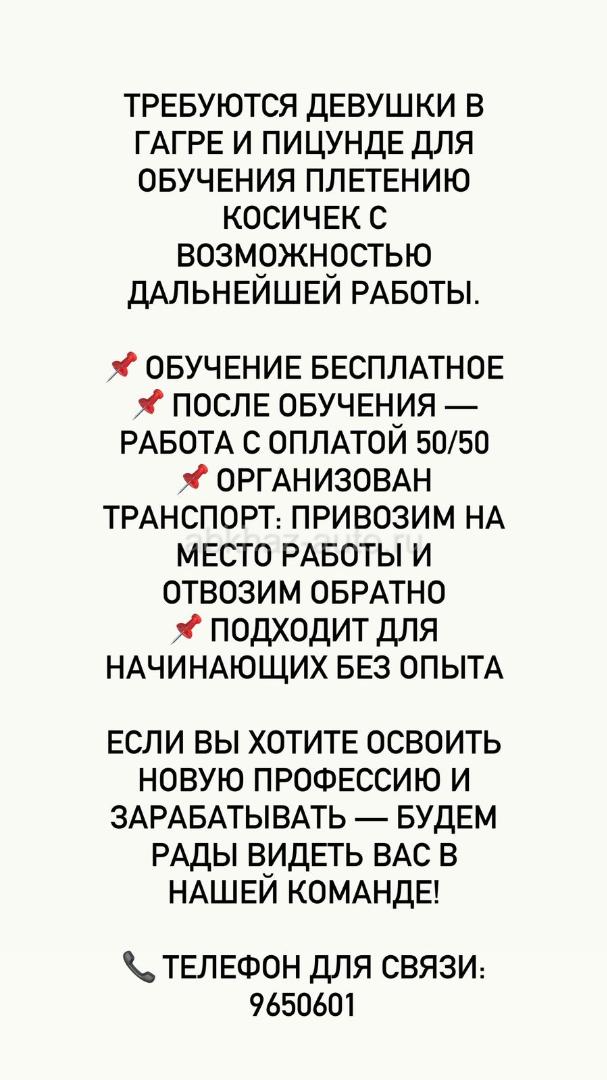 🏨 Требуются прачки в Прачечную компании Гаруда в с. Дзыгута.