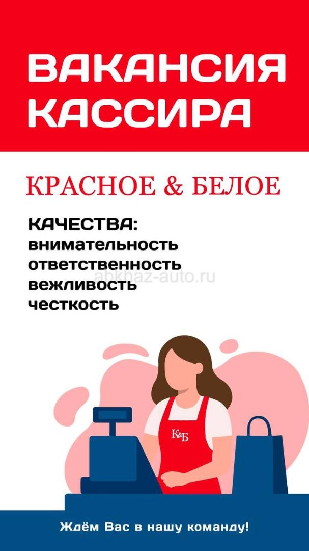 Дополнительная информация: В сеть магазинов «Красное & Белое» расположенных в п. Агудзера (Центр светофор) ,г. Сухум Новый район (2 круг), г. Гагра (кольцевая), п. Цандрипш (ц.рынок) Ищешь стабильную работу с опытом или без? Мы всему научим – главное желание работать! Открыта вакансия кассира-консультанта. Сменный график, стабильная зарплата и работа рядом с домом. Количество мест ограничено — пиши в личные сообщения. Whatsapp +7 (940) 763-58-85
