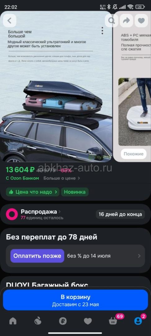 Дополнительная информация: Багажник б.у., в хорошем состоянии, использовался год