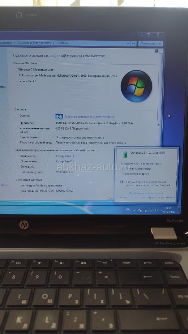 Дополнительная информация: HP Офисный ноутбук , Зарядку держит от 1ч30 - до 2х часов от зависимости использования, Установлено Win7, не Глючит не Лагает, Процессор AMD Radeon 1,90ггц, Оперативная память 6гб, жёсткий диск 500Gb, Видеопамять AMD Radeon HD 6480G 512mb, Звук•Вай-Фай•Блютуз•Клавиатура, все работает, в комплект Зарядное устройство, беспроводная мышка, Коврик, Торг Уместен