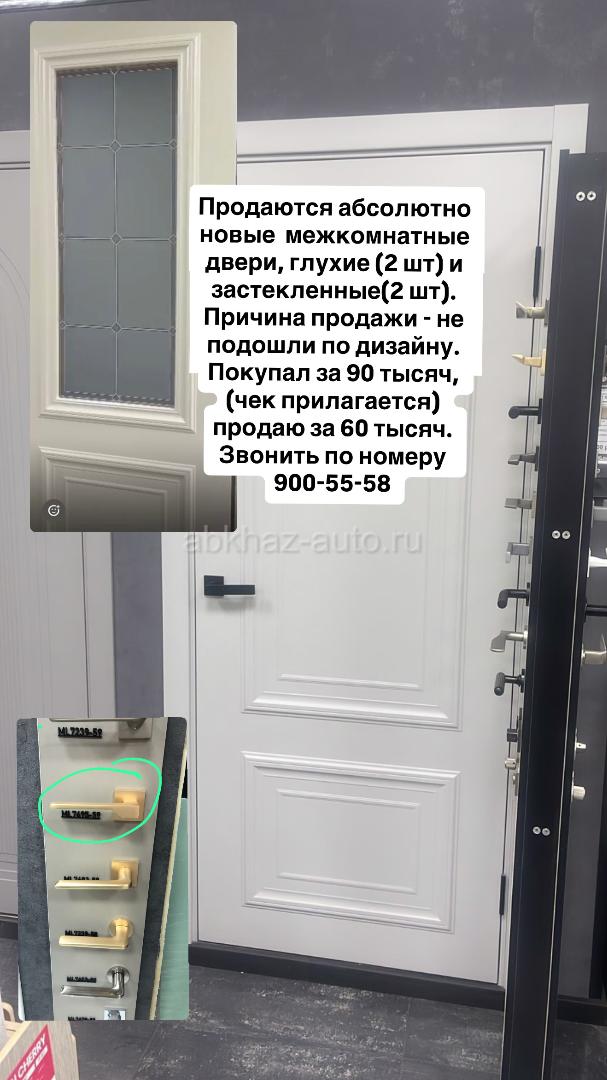 Дополнительная информация: Продаются новые межкомнатные двери (4 шт) Глухие - 2 шт 60 размер Остекленные- 2 шт 80 размер Полный комплект с наличниками и фурнитурой Покупали за 90 000, продаются за 60 000 тыс
