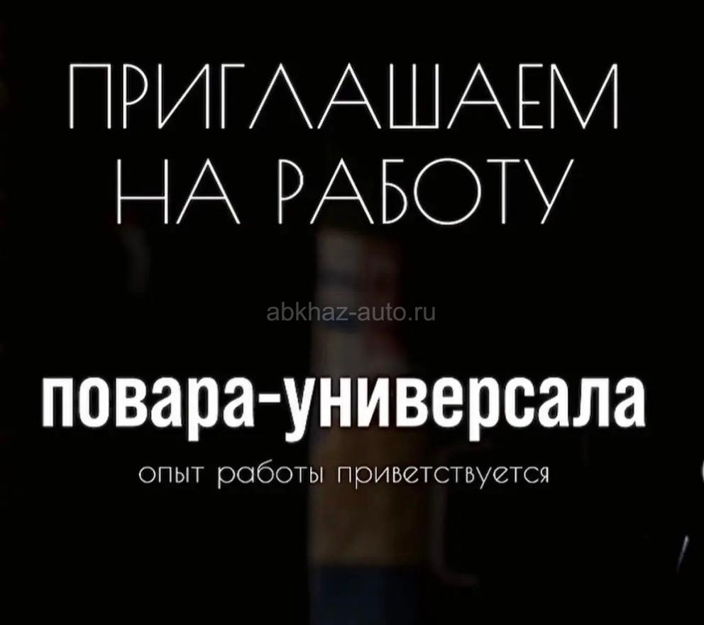 Дополнительная информация: В кафе ,в центре Гагры ,по ул.Абазгаа ,требуется повар-универсал,с опытом